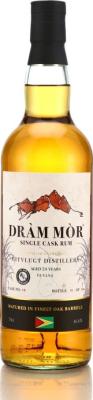 Discover the unique and captivating taste of the Dram Mor 1997 Uitvlugt Distillery Guyana Single Cask Rum. This vintage delight was distilled at the prestigious Uitvlugt (Port Mourant) Distillery in Guyana and has been matured for 24 years. With only 141 bottles available, this limited-edition rum is bottled at 46.6% ABV by the renowned independent bottler, Dram Mor. The rum boasts an intriguing fusion of aromas, including classic whisky, rich leather, sweet banana, tantalizing peat, and delicate sugar. On the palate, you'll experience a surprising blend of peat, oak, and leather, sweetened with banana and coconut undertones. It's a sophisticated rum that promises an exploration of flavors echoing the rich history of the Port Mourant distillery.