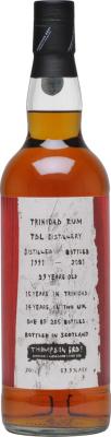 Experience the unparalleled craftsmanship of the Thompson & Brothers 1991 Trinidad TDL 29yo 59.9% 700ml. This exceptionally long-aged rum hails from the esteemed Trinidad Distillers Limited (TDL), known for producing rums of remarkable character. Distilled in 1991 and bottled in 2021, this limited release consists of just 205 bottles, making it a true collector's gem. The rum has undergone a unique aging process, spending 15 years maturing at its source in Trinidad, followed by an additional 14 years in the UK. This meticulous aging has resulted in a rich and complex spirit with intense flavors of tropical fruit, spice, and a refreshing mintiness reminiscent of a lighter Caroni.