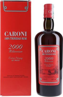 The Velier Caroni 2000 Trinidad Millennium Extra Strong is a limited-edition rum from the historic and now-defunct Caroni distillery, meticulously bottled by the esteemed independent bottler Velier. This exquisite rum is a blend of 12 casks from the year 2000, designed to highlight the distillery's signature notes: a harmonious blend of tar and hydrocarbons, exotic fruits, wood, spices, and floral aromas. The rum's deep orange-copper hue and powerful bouquet are a testament to its rich heritage and complex profile.