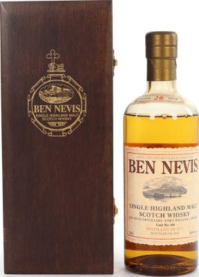 This bottle of whisky is from a limited edition with a total number of 185 bottles. It's a bottle of a 26-years-old spirit. The liquid gold distilled in 1975 was then aged to maturity. Did you know that the whisky was bottled in 2001? The creators tailored this whisky to an ABV of 53.9 %. The bottle size is 700 ml. The Ben Nevis distillery presently has a yearly capacity of 1,800,000 liters. This is a rare rum from Highlands as this region mainly produces whisky.