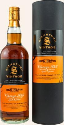 The Ben Nevis 2013 SV whisky bottle is a distinguished single malt offering from the renowned Ben Nevis distillery, bottled by Signatory Vintage. Distilled in 2013 and bottled in 2022, this whisky has undergone a meticulous aging process of over 8 years in a combination of two refill hogsheads and two sherry finish butts, resulting in a limited small batch release of only 2070 bottles. With an ABV of 48.1%, this Highland whisky presents an intriguing blend of flavors and aromas reflective of its unique maturation process.