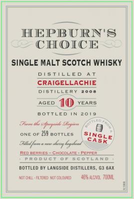 Application has the following data for Craigellachie 2008 LsD Sherry Hogshead 46% 700ml: