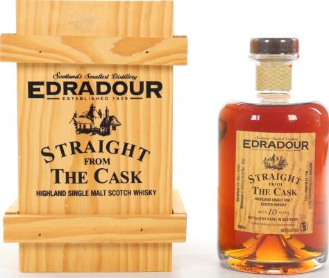 This is a limited bottle of whisky. The release contains 981 limited bottles. The spirit was aging for 10 years before bottling. Back in 2000, the liquid gold was distilled. The distillate was aged in a barrel until 2010, when it was bottled. 58.5 % is the stated ABV of this whisky. The volume of the bottle is 500 ml. Edradour distillery produces Highland Single Malt whisky and is based in Perthshire. Edradour is created by hand in Scotland's smallest distillery today. This is a rare rum from Highlands as this region mainly produces whisky.