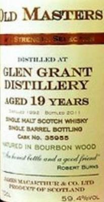 Glen Grant 1992 JM Old Masters Cask Strength Selection Bourbon Wood 35955 59.4% 700ml information
