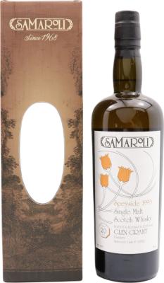 This is an exclusive whisky of only 348 bottles available worldwide. The spirit of 20 years to enjoy. 1993 was when this liquid gold was distilled. The distillate was aged in a barrel until 2013, when it was bottled. The creators tailored this whisky to an ABV of 45 %. The volume of the bottle is 700 ml. Samaroli has been bottling whisky since 1968. Campari is the owner of Glen Grant. This is a rare rum from Speyside as this region mainly produces whisky.