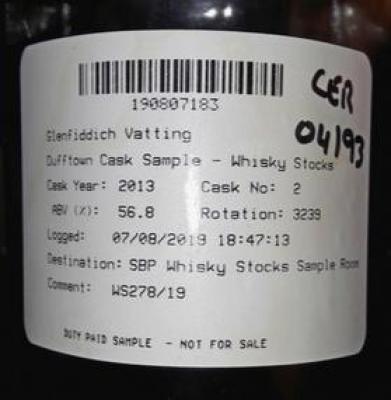 Application has the following data for Glenfiddich 2013 Duty Paid Sample 2 56.8% 700ml: