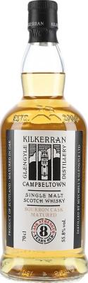 The Kilkerran 8yo Cask Strength Bourbon is a single malt whisky distilled at Glengyle distillery, located in the historic town of Campbeltown. This highly anticipated release is the first bourbon cask matured edition since 2018, fully matured in ex-bourbon casks for a minimum of 8 years. Bottled at a robust cask strength of 55.8% ABV, this whisky is presented without chill filtration or artificial coloring, showcasing its true cask strength and natural color. Founded by William Mitchell in 1872, the Glengyle distillery experienced a period of dormancy from 1925 until its refurbishment and reopening in 2004 by new owners Springbank, under the guidance of Hedley Wright, a descendant of William Mitchell. The distillery produces both peated and unpeated expressions under three distinct brands: Springbank, Hazelburn, and Longrow. Kilkerran, derived from the Gaelic "Caen Loch Cille Chiarain," is the name given to the single malt whisky made at the Glengyle distillery. This 8-year-old single malt from Glengyle distillery is one of two cask strength Kilkerrans released in early 2023, the other being fully matured in sherry casks. The whisky's nose reveals surprising intensity from the young bourbon barrel, with notes of ripe apples, kiwi, a touch of grassiness, vanilla, cookie dough, herbs, and lime zest. There's a unique funkiness that is challenging to describe, possibly hinting at a light peat influence. On the palate, the whisky starts pleasantly for its high ABV, with citrus, bright fruits, and a pleasant sweetness. The peat becomes more recognizable yet remains subtle. The finish sees the peat smoke introducing a slight dryness that quickly fades, adding further complexity to the concert of aromas and delivering decent intensity and length.