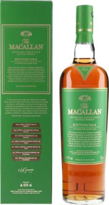 The Macallan Edition No.4 is the fourth release in the distinguished Edition Series from The Macallan, a renowned Speyside distillery. Bottled in 2018, this single malt Scotch whisky celebrates Macallan's rich whisky-making heritage and showcases a unique selection of oak cask styles. The creation of Edition No.4 highlights the craftsmanship and innovative design of the new Macallan Distillery, which opened in the same year.