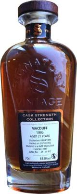 Application has the following data for Macduff 1995 SV Cask Strength Collection 21yo Refill Sherry Butt #7887 63% 700ml: