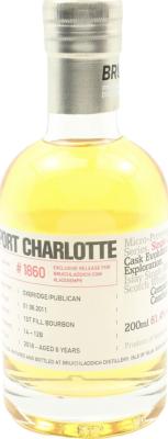 Application has the following data for Port Charlotte #LADDIEMP8 2011 Micro-Provenance Series 6yo 1st Fill Bourbon #1860 61.4% 200ml:
