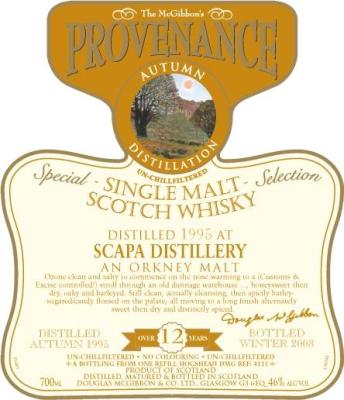 Scapa 1995 McG McGibbon's Provenance Refill Hogshead DMG 4111 46% 700ml information