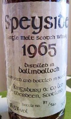 Application has the following data for Speyside distilled in Ballindalloch 1965 Kb #4547 58.5% 700ml: